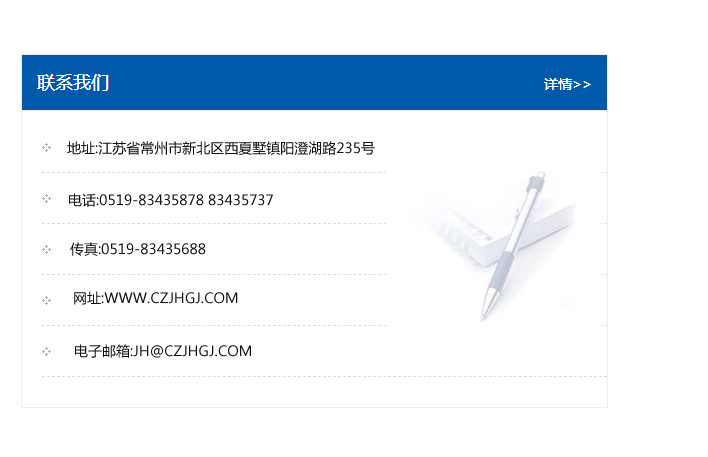 傳真:0519-83435688    郵編:213135    網址:WWW.czjhgj_com.hncoto.com    電子郵箱:JH@czjhgj_com.hncoto.com